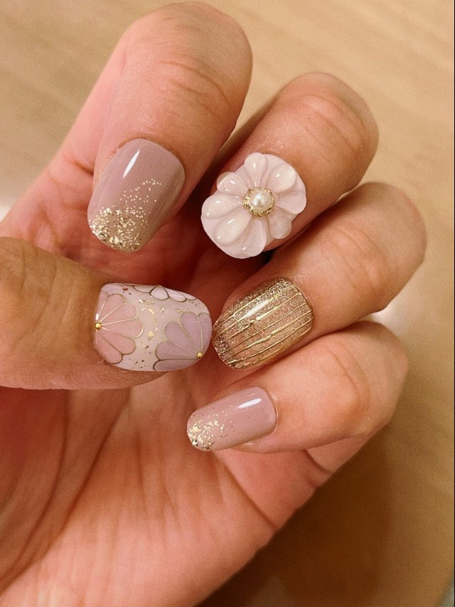 今年初のレトロなフラワーぷっくりネイル ぷっくり可愛いなぁ。